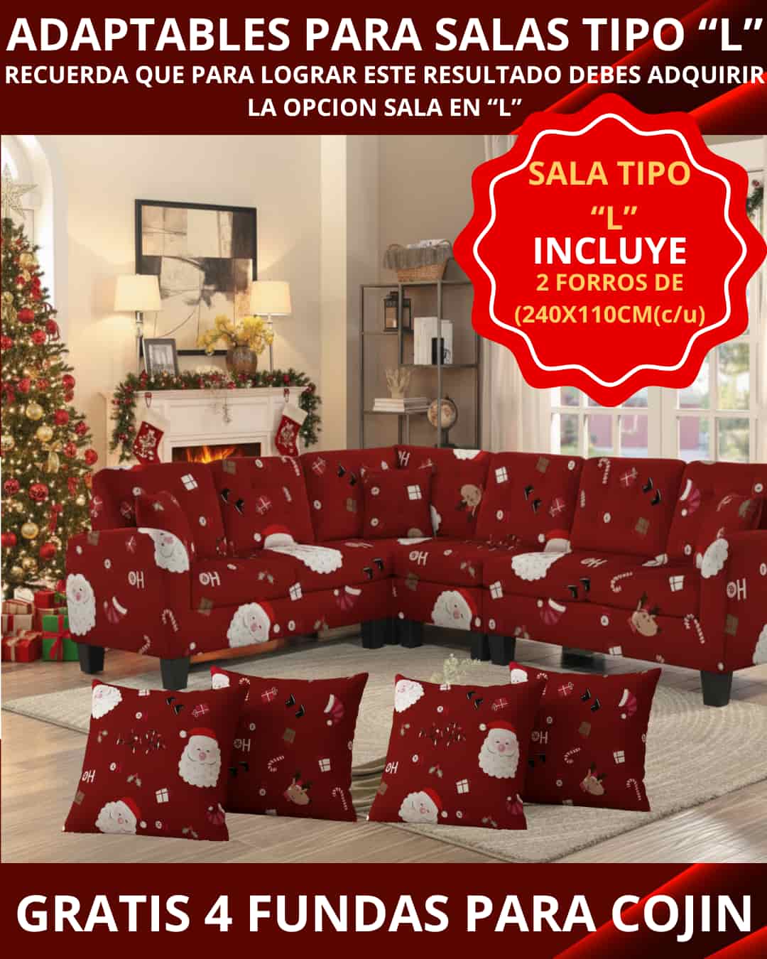 Funda Navideña PREMIUN ADAPTABLE PARA SOFA DE 2 Y 3 PUESTOS HOY GRATIS 2 FUNDAS PARA COJIN